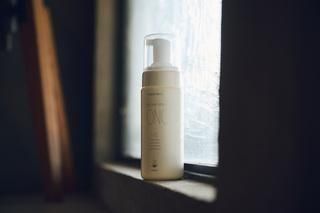 STEP2.手のひらに3〜4プッシュほど出し、顔全体にやさしくのせます。乾いた肌のまま、指の腹でくるくると円を描くように30〜60秒。泡をつぶさないように軽いタッチで。